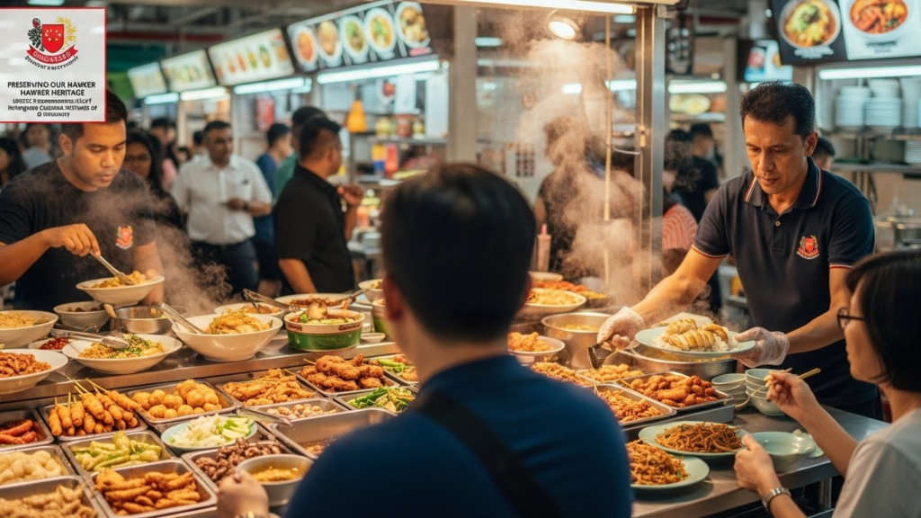 It refers to Singapore’s hawker centres being recognized by UNESCO as part of the world’s intangible cultural heritage.