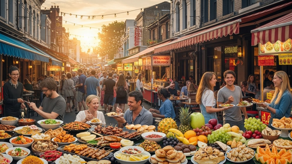 • Community-driven: Food is social. Locals meet over meals, queue together, and share tables.
